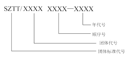 第九条 团体标准编号由团体标准代号(SZTT)、团体代号、标准顺序号及年代号组成,其编号规则如下: