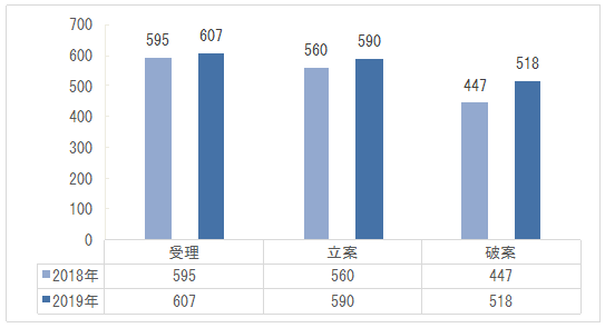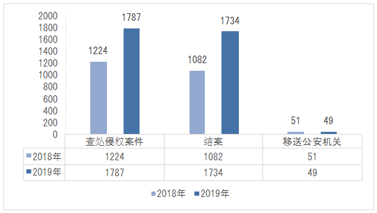 图4.2018-2019年深圳市公安机关知识产权案件量