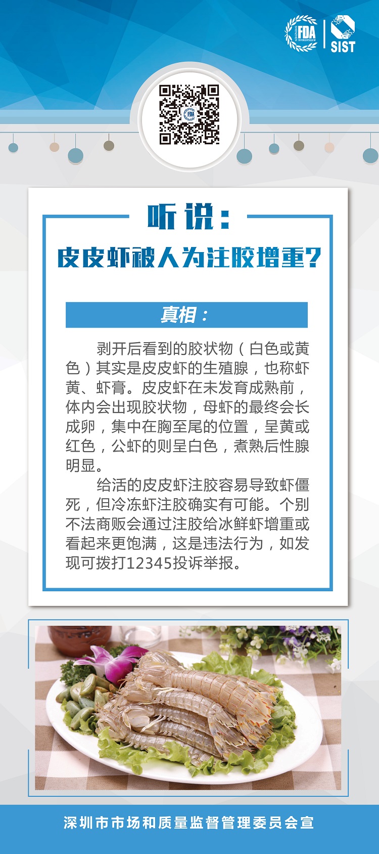 真相:剥开后看到的胶状物(白色或黄色)其实是皮皮虾的生殖腺,也称虾黄、虾膏。皮皮虾在未发育成熟前,体内会出现胶状物,母虾的最终会长成卵,集中在胸至尾的位置,呈黄或红色,公虾的则呈白色,煮熟后性腺明显。
