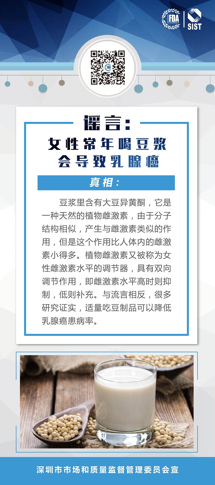 真相:豆浆里含有大豆异黄酮,它是一种天然的植物雌激素,由于分子结构相似,产生与雌激素类似的作用,但是这个作用比人体内的雌激素小得多。植物雌激素又被称为女性雌激素水平的调节器,具有双向调节作用,即雌激素水平高时则抑制,低则补充。与流言相反,很多研究证实,适量吃豆制品可以降低乳腺癌患病率。